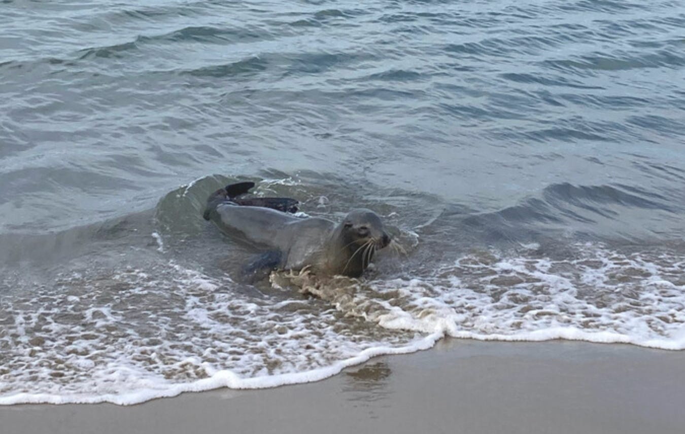 UPDATE: This photo was taken by another Dolphin Club member just a few hours after my encounter. This seal is young, exhausted and probably unwell and he looks a lot like my friend. Sad.